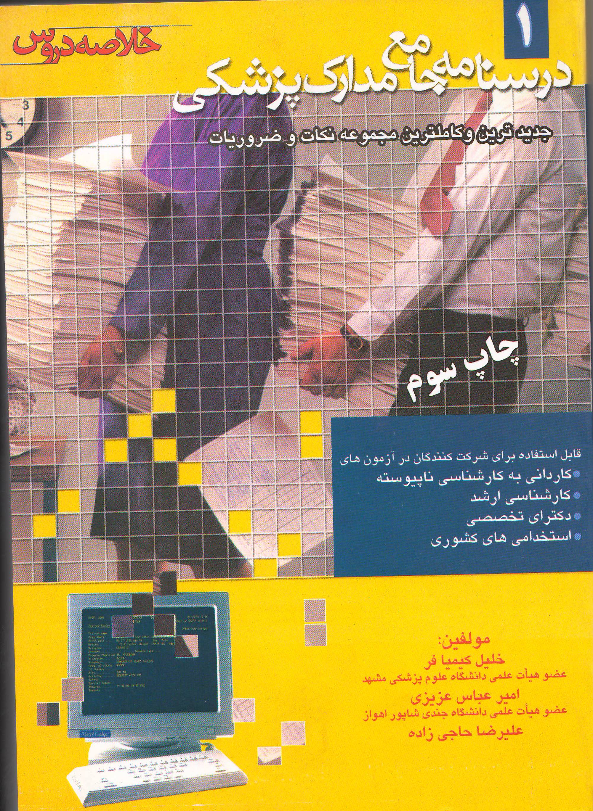 درسنامه جامع مدارك پزشكي جلد 1- آزمونهاي طبقهبندي شده پدیدآورنده: خليل كيميافر و همكاران موضوع : مدارك پزشكي