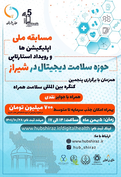 مسابقه ملی اپلیکیشنها و رویداد استارتاپی حوزۀ سلامت دیجیتال ازسوی شتابدهنده هاب شیراز (شتابدهنده مشترک دانشگاه شیراز و حرکت اول)، همزمان با پنجمین دورۀ کنگره بینالمللی سلامتِ همراه شیراز برگزار میشود.