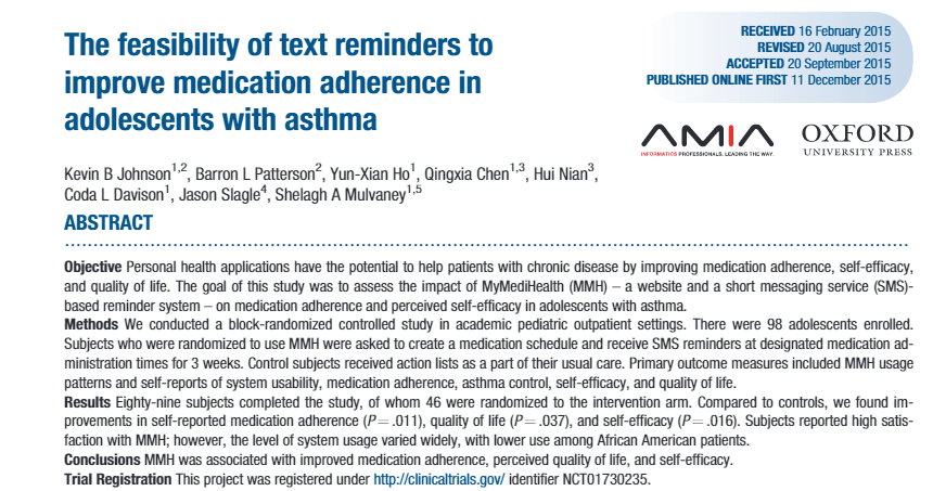 The feasibility of text reminders to improve medication adherence in adolescents with asthma