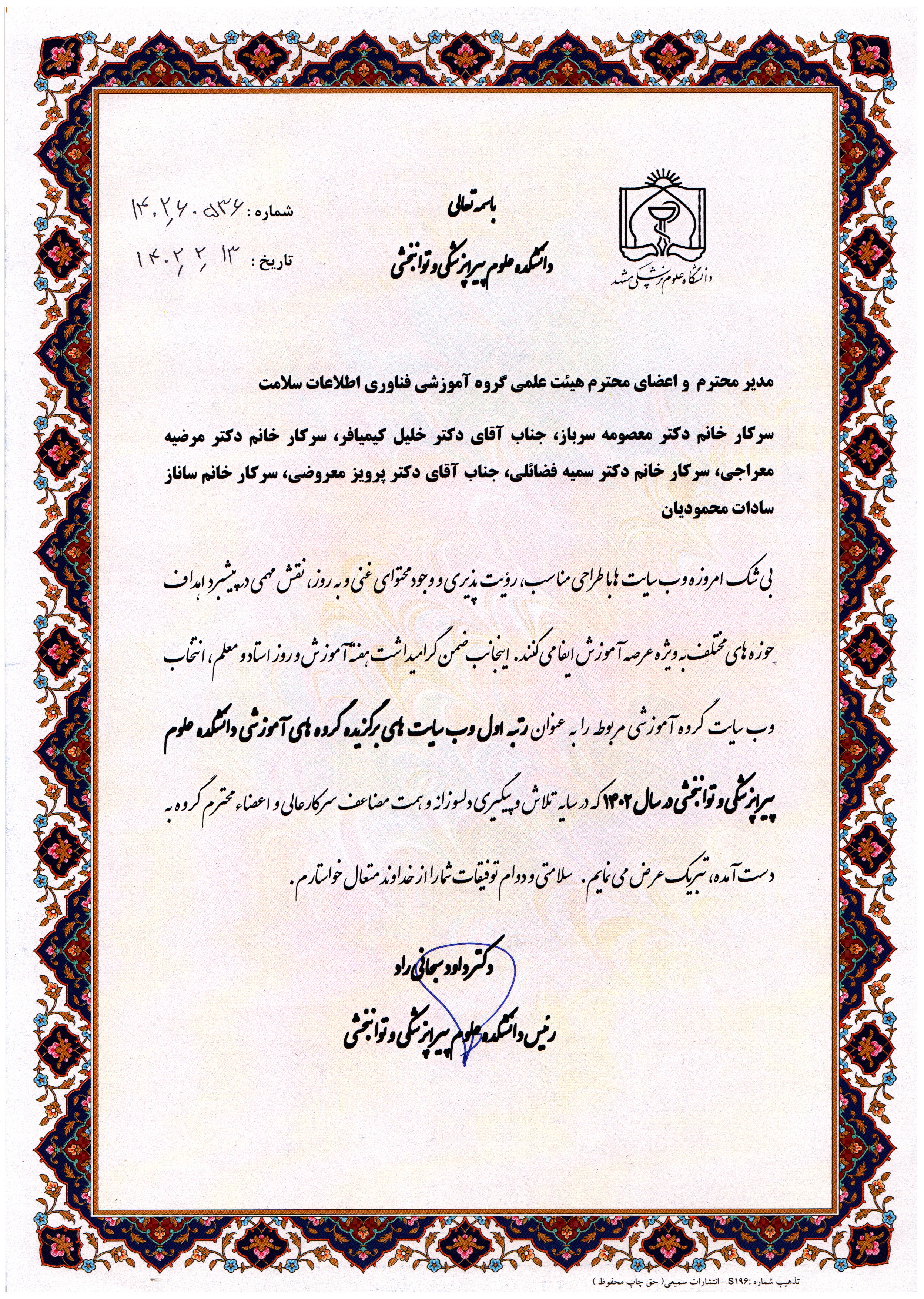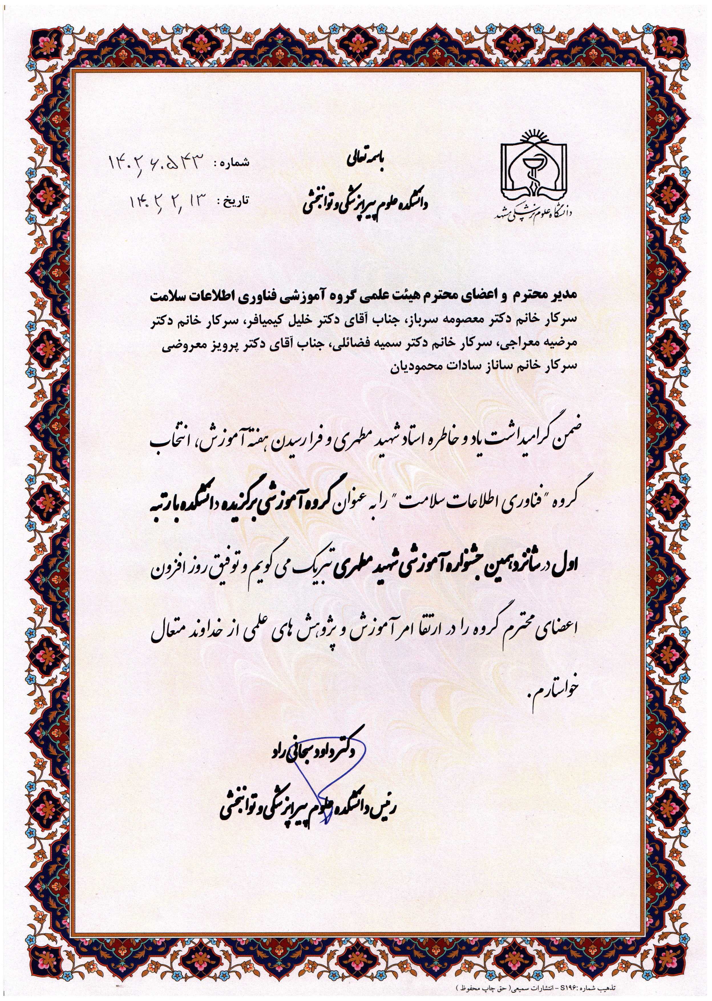 گروه فناوری اطلاعات سلامت در شانزدهمین جشنواره شهید مطهری افتخارات متعددی را کسب نمودند.
